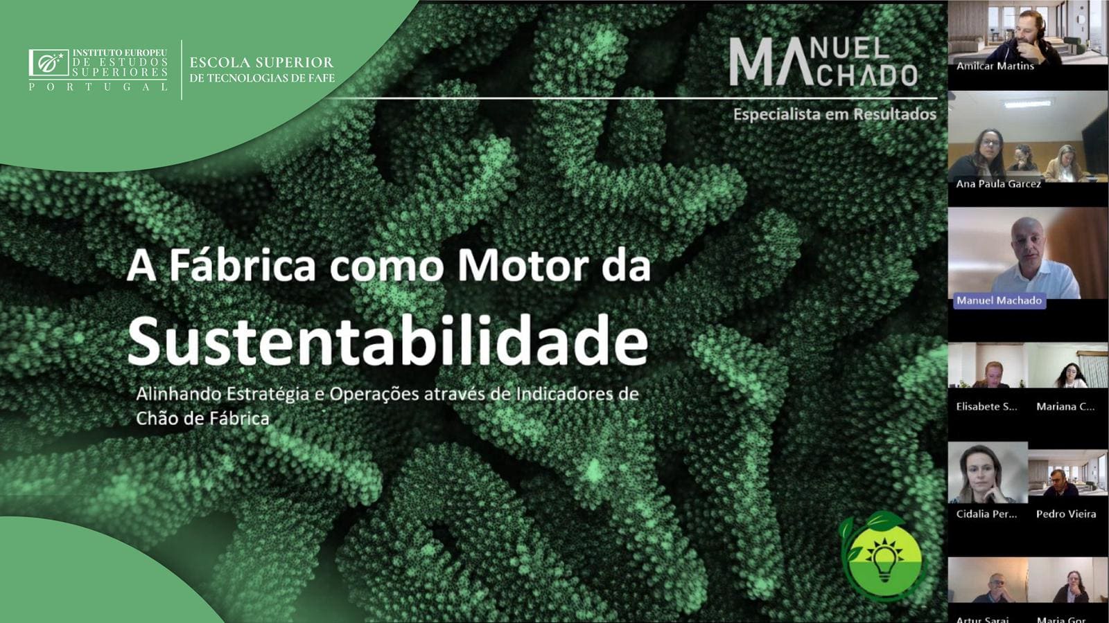 A sessão contou com a participação do convidado Manuel Machado, especialista em resultados, com vasta experiência na área da gestão estratégica e operacional em contexto industrial. Através de uma abordagem prática e orientada para a realidade empresarial, o orador partilhou casos concretos, evidenciando de que forma as organizações industriais podem alinhar os seus objetivos estratégicos com as exigências da sustentabilidade e da eficiência operacional.